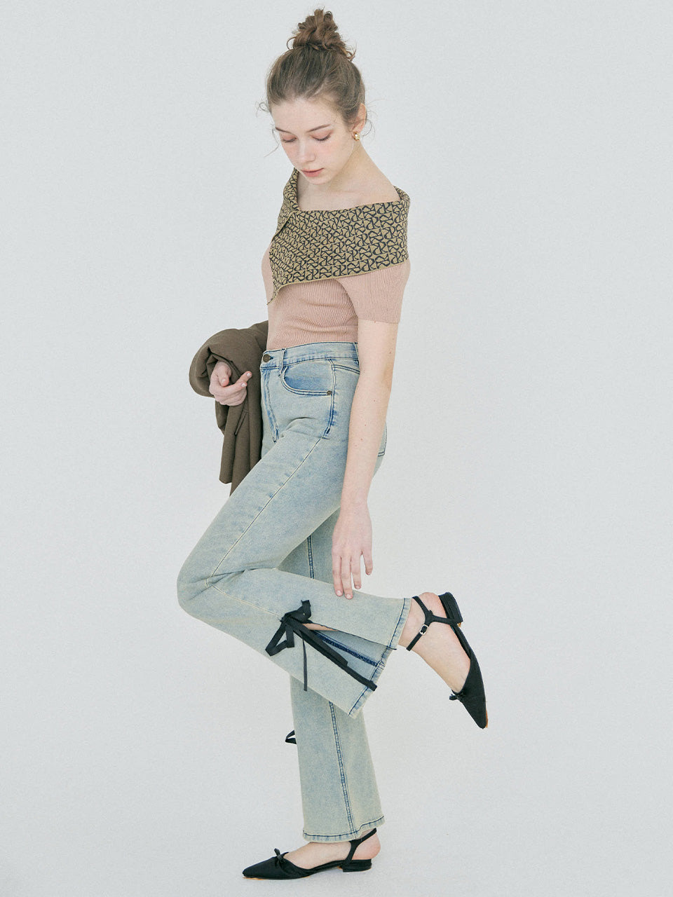 【BESTSELLER】side slit denim ribbon pants