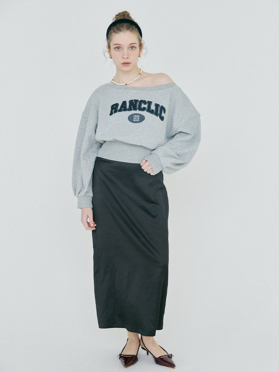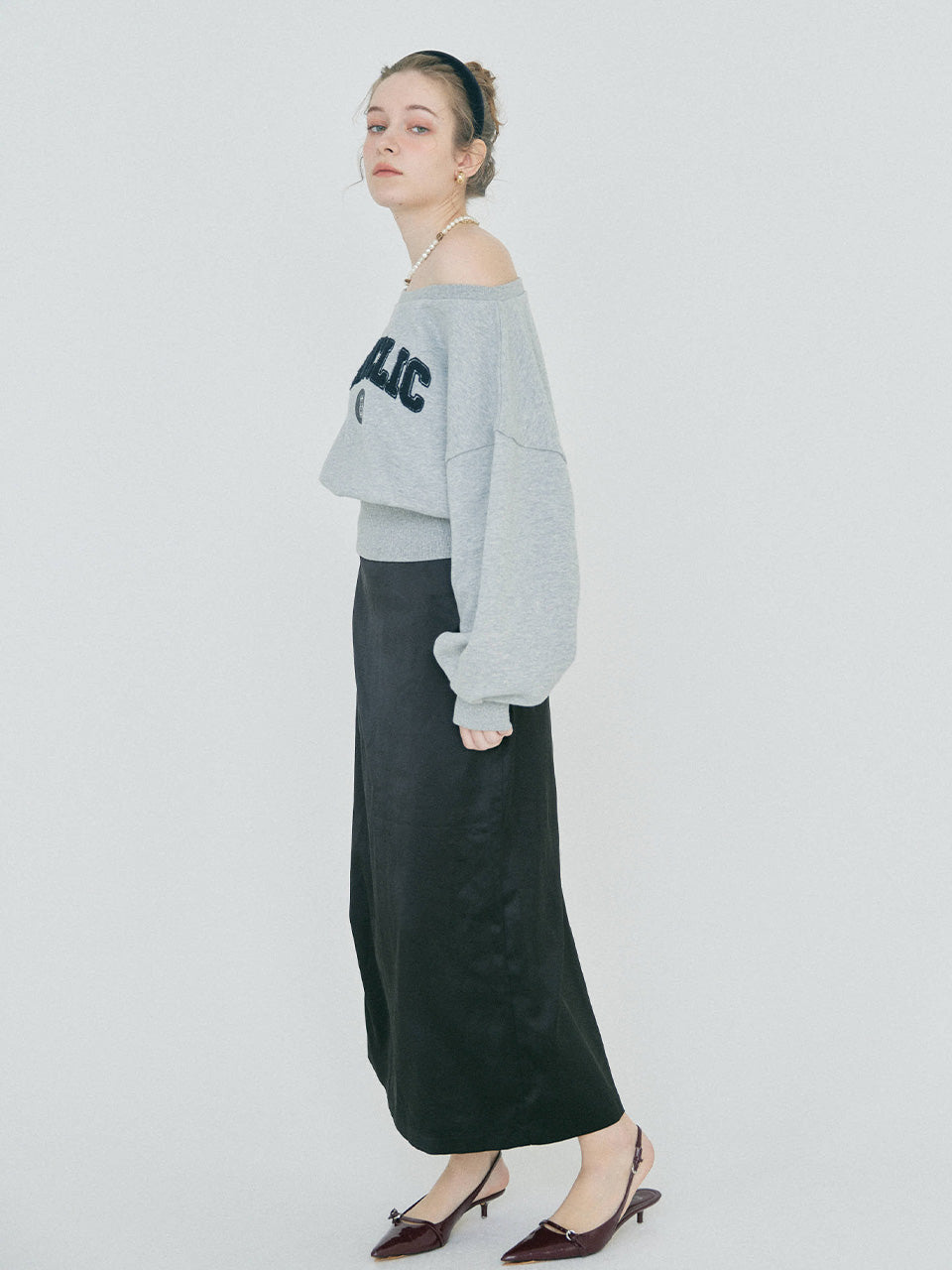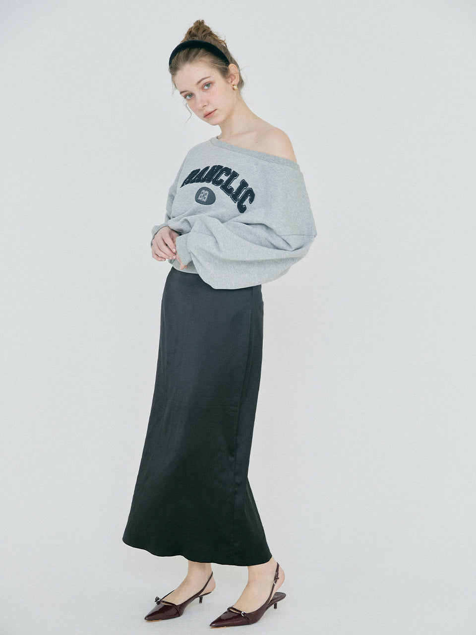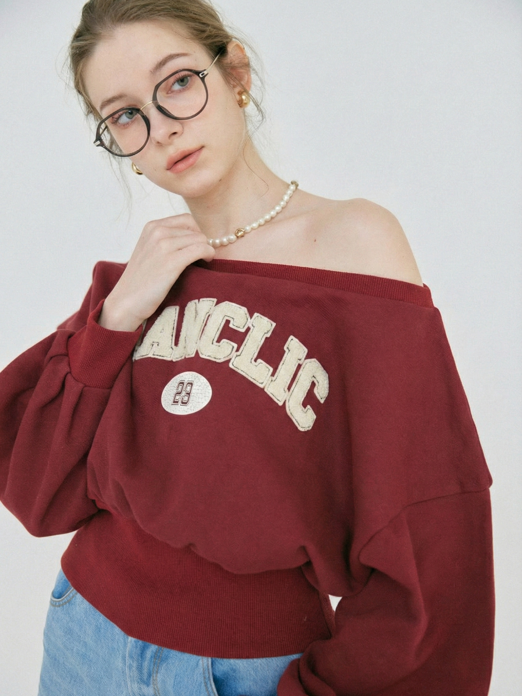 【2/12 OPEN】Off shoulder flocked logo sweat