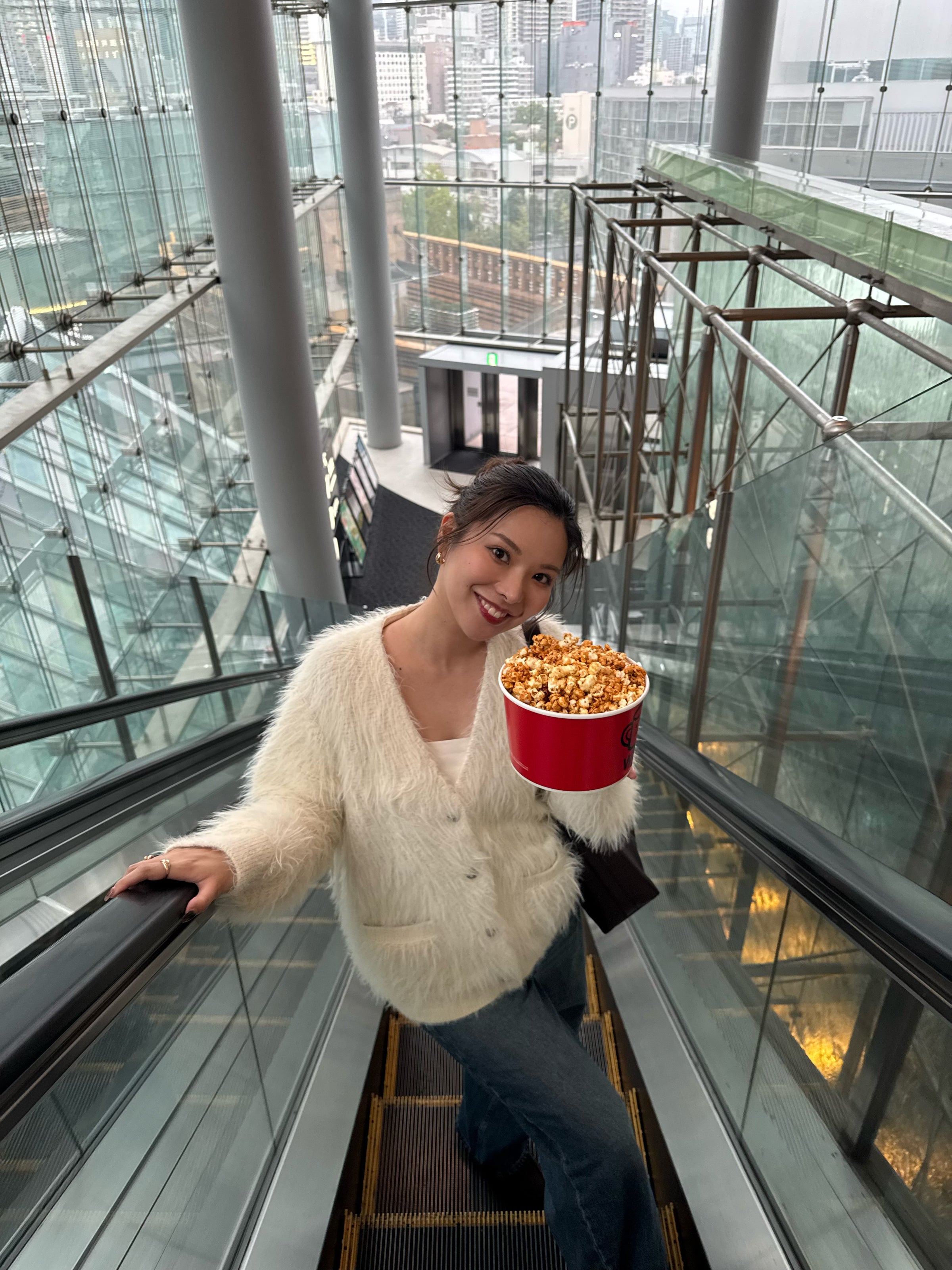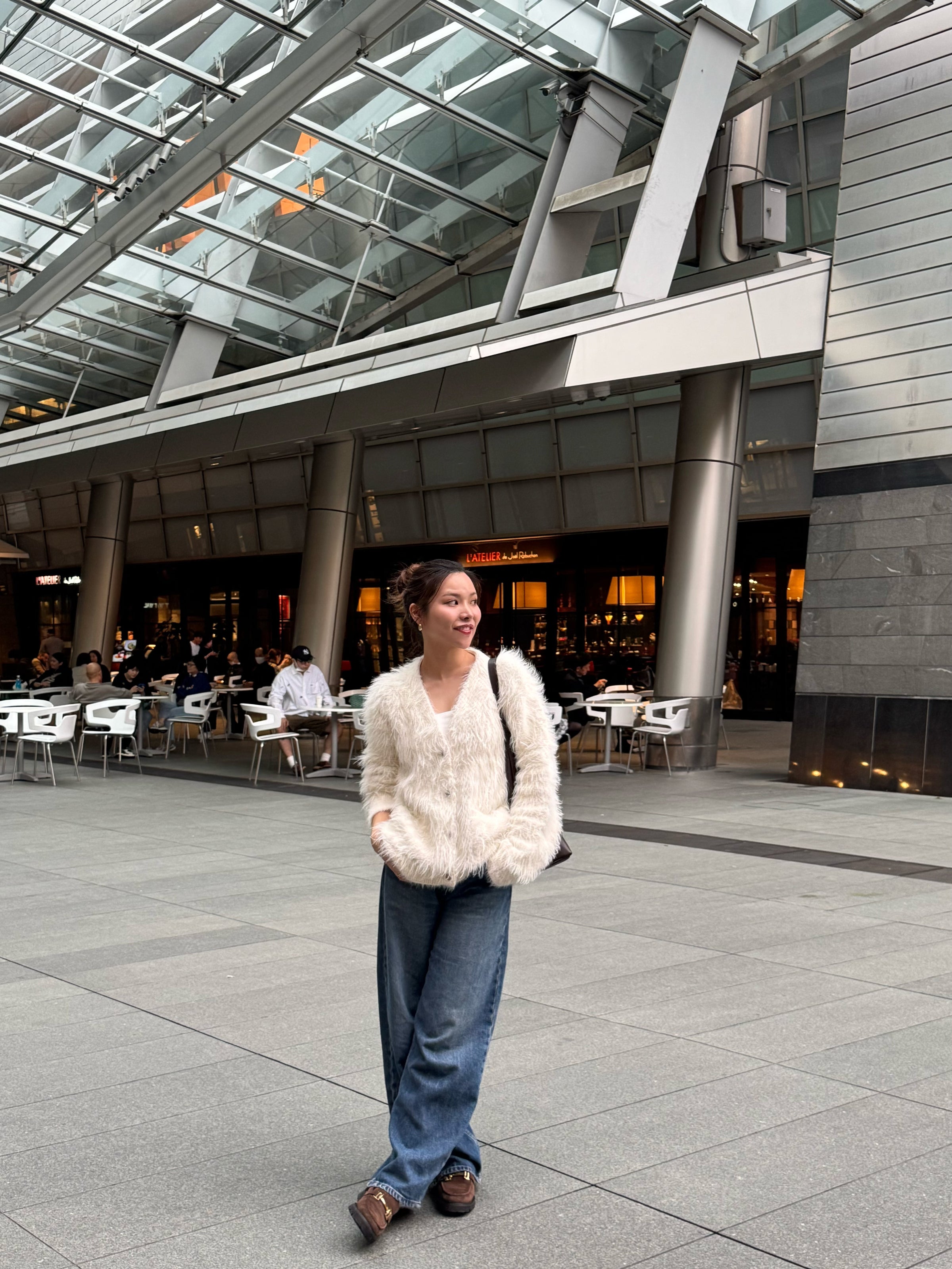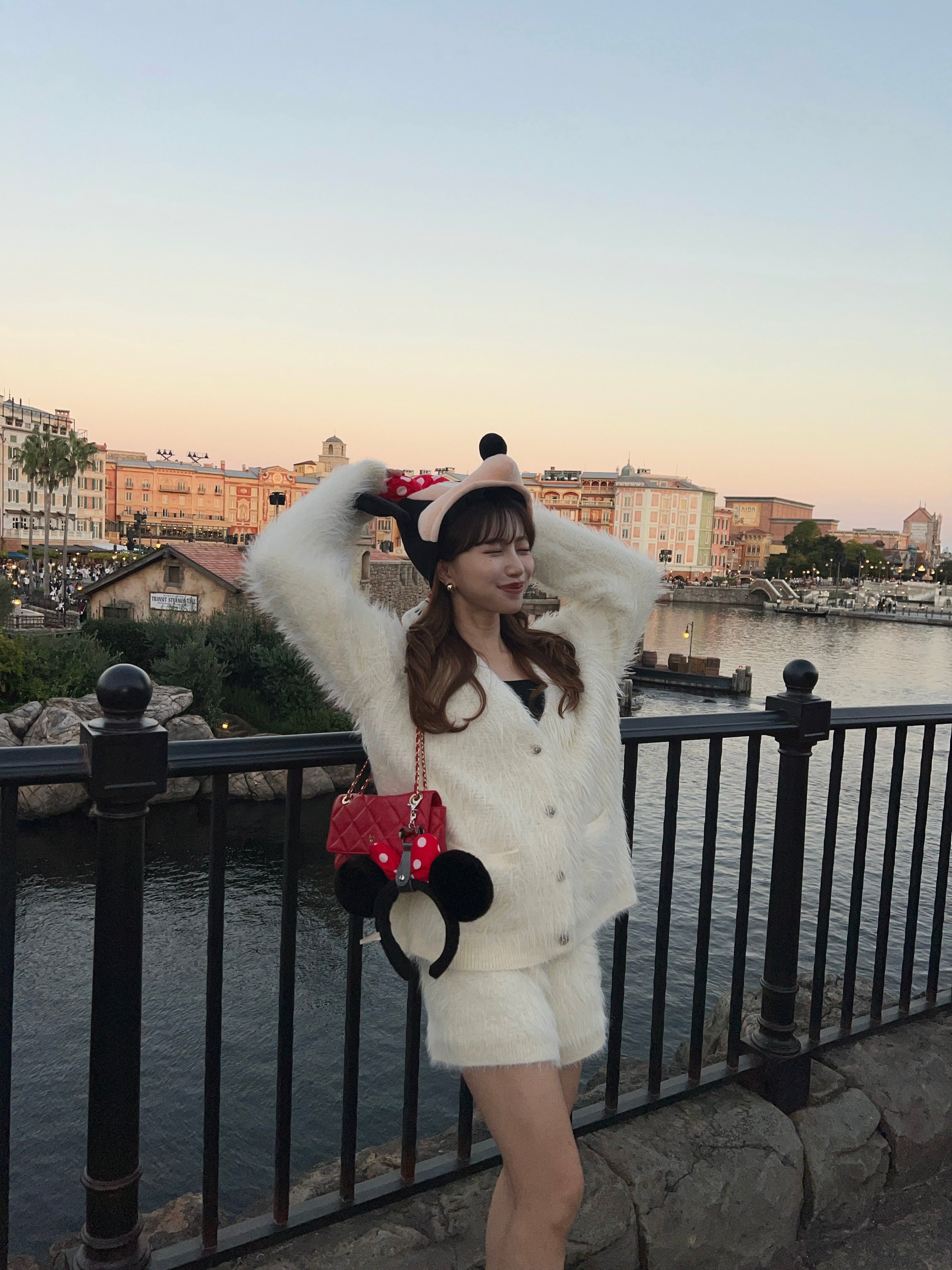 首元はすっきりと開いたVネックで抜け感をプラス。