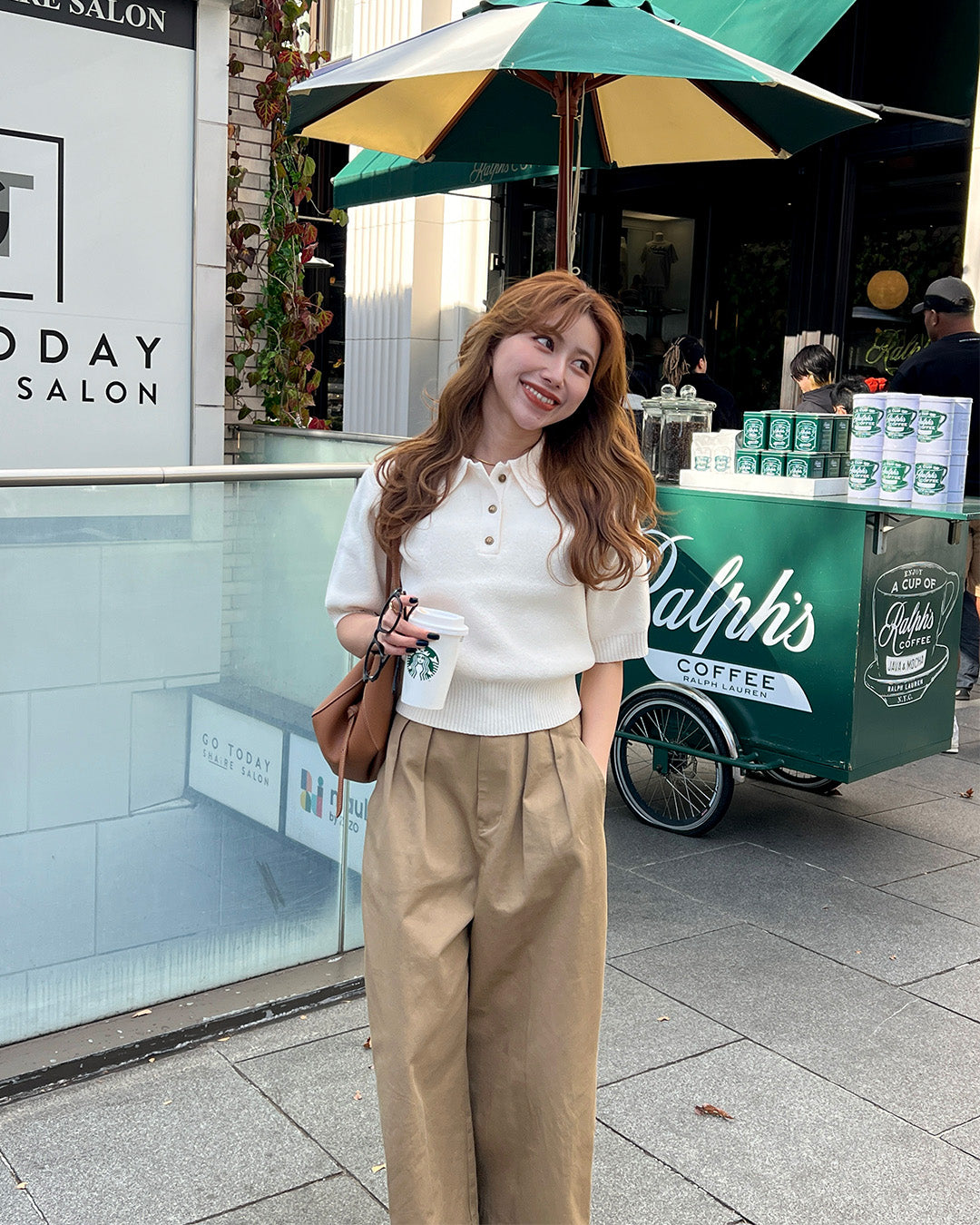 デニムやスラックス、スカートなどボトムを選ばない丈感。